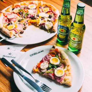 Pizza artesanal, feita na hora, servida na temperatura correta e com ingredientes fresquinhos!